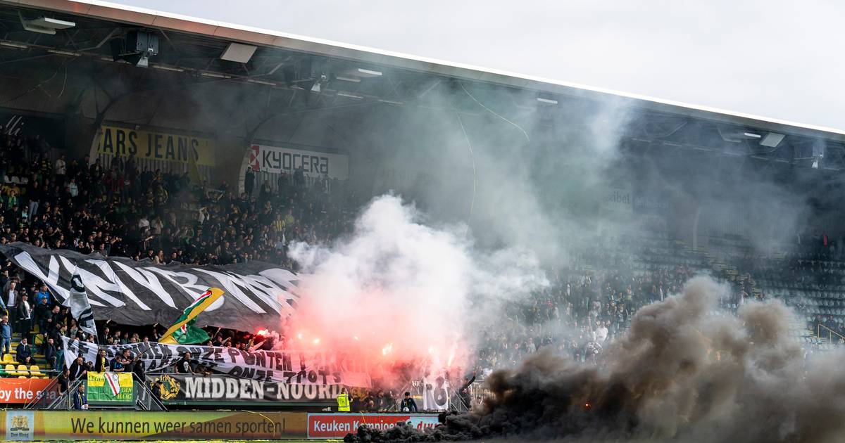 That happened from the Middle North where the fanatical supporter sits. Fan Club Legia Den Haag. The Eredivisie match between FC Emmen and ADO Den Haag is suspended for 17 minutes after supporters set off fireworks outside the stadium.